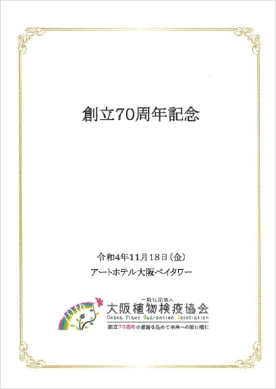 このたび、大阪植物検疫協会が創立70周年を迎えられたことを心からお慶び申し上げます。