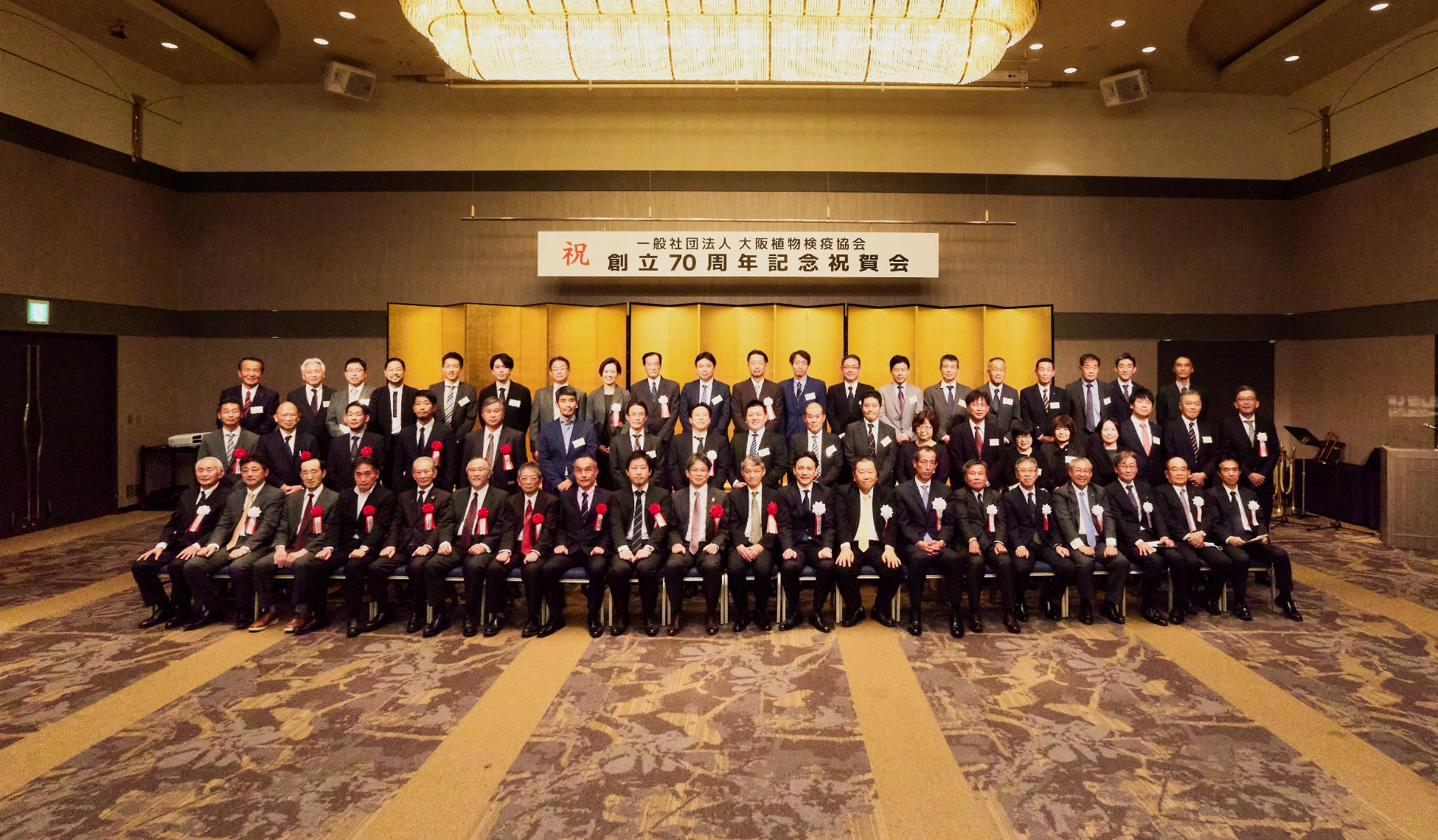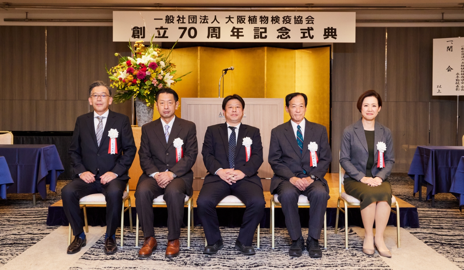 本日はご多用のところ一般社団法人大阪植物検疫協会の創立70周年記念式典に、会員ならびに協会の諸先輩各位はもとより、来賓として農林水産省神戸植物防疫所、大阪港湾局、関係団体をはじめ多数の皆様方にご出席を賜わり、当協会を代表いたしまして、厚く御礼申し上げます。