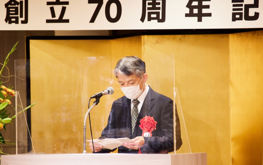 先ほど創立70周年記念式典が滞りなく執り行われましたこと、心からお喜び申し上げます。