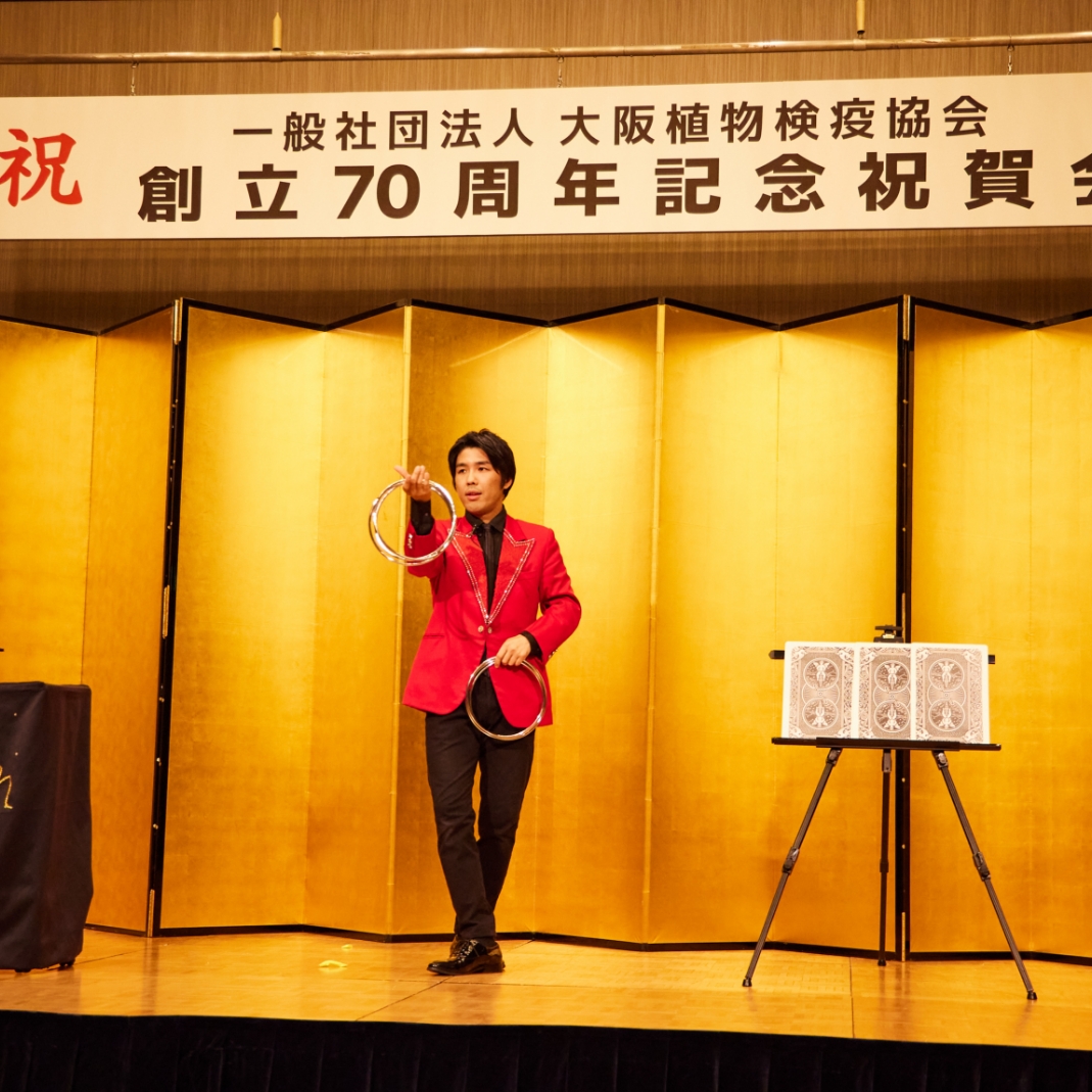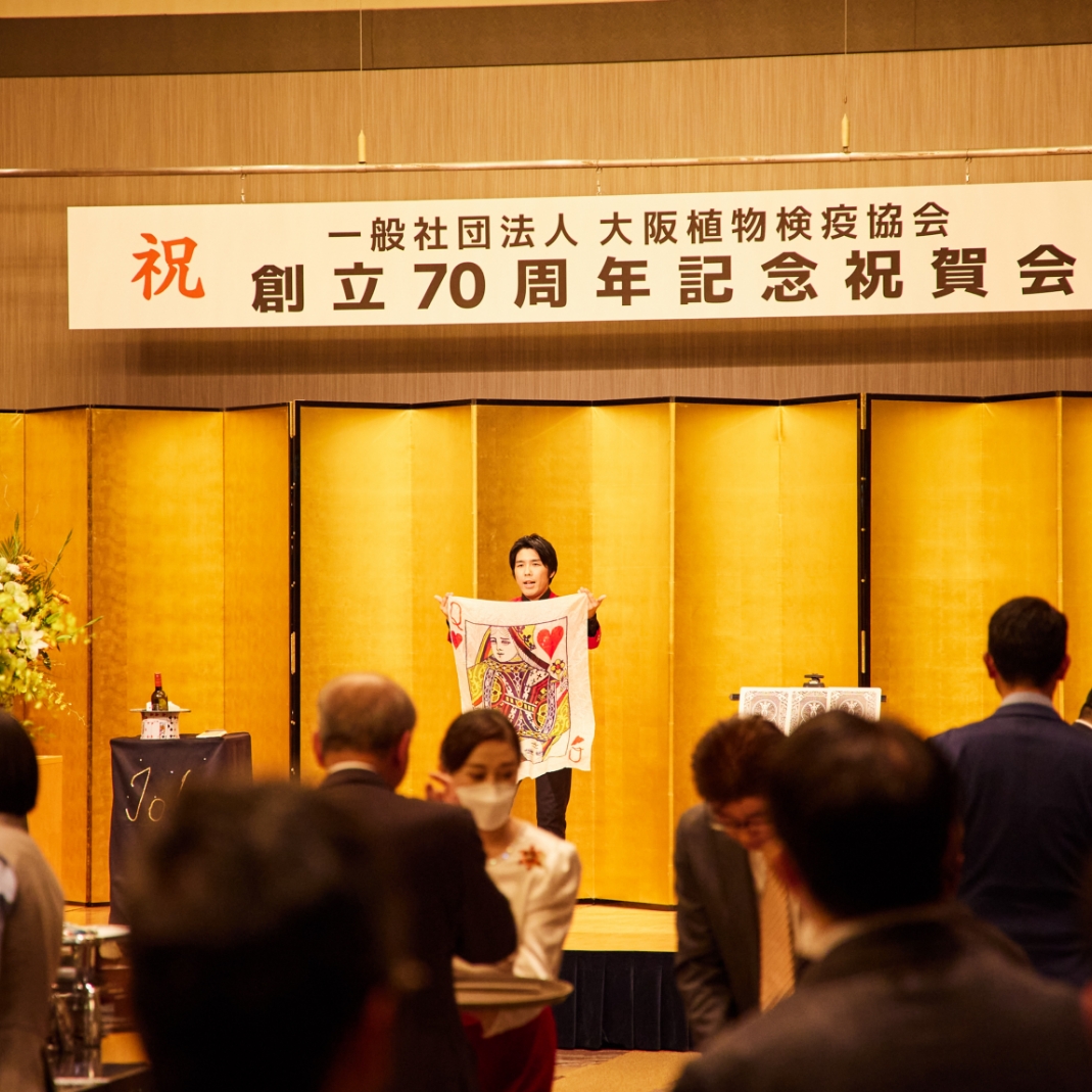 本日は、お忙しい中ご出席いただきまして、誠にありがとございました。この度はこのように当協会の創立70周年記念事業を企画していただきました理事会・事務局及び関係者の方々には感謝申し上げます。また、本日の宴席を盛り上げていただきましたマジシャン、漫才師の方々におかれましては、本日は楽しませていただきまして誠にありがとうございました。